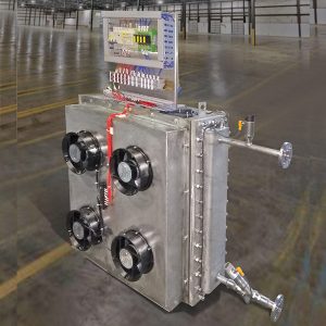 Smart Air Cooled Heat Exchanger - with programmable control panel which allows programming of process fluid flow, programming of fan sequencing with leakage detection.